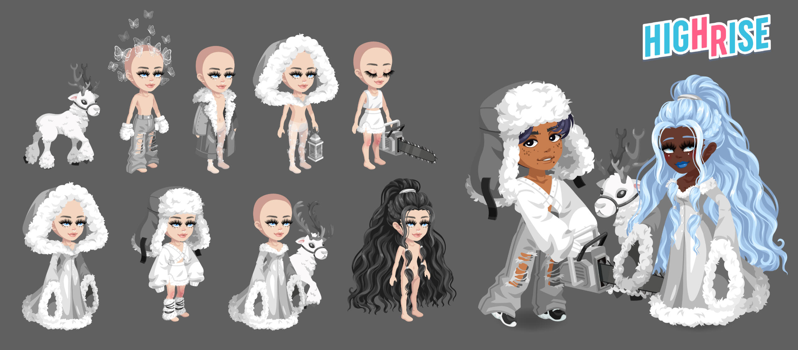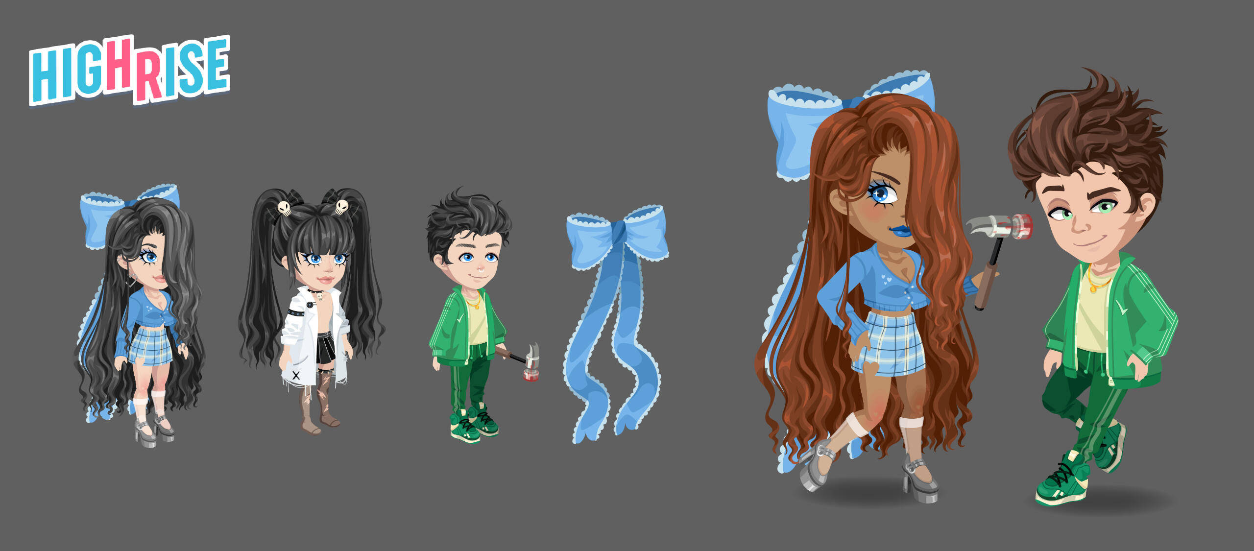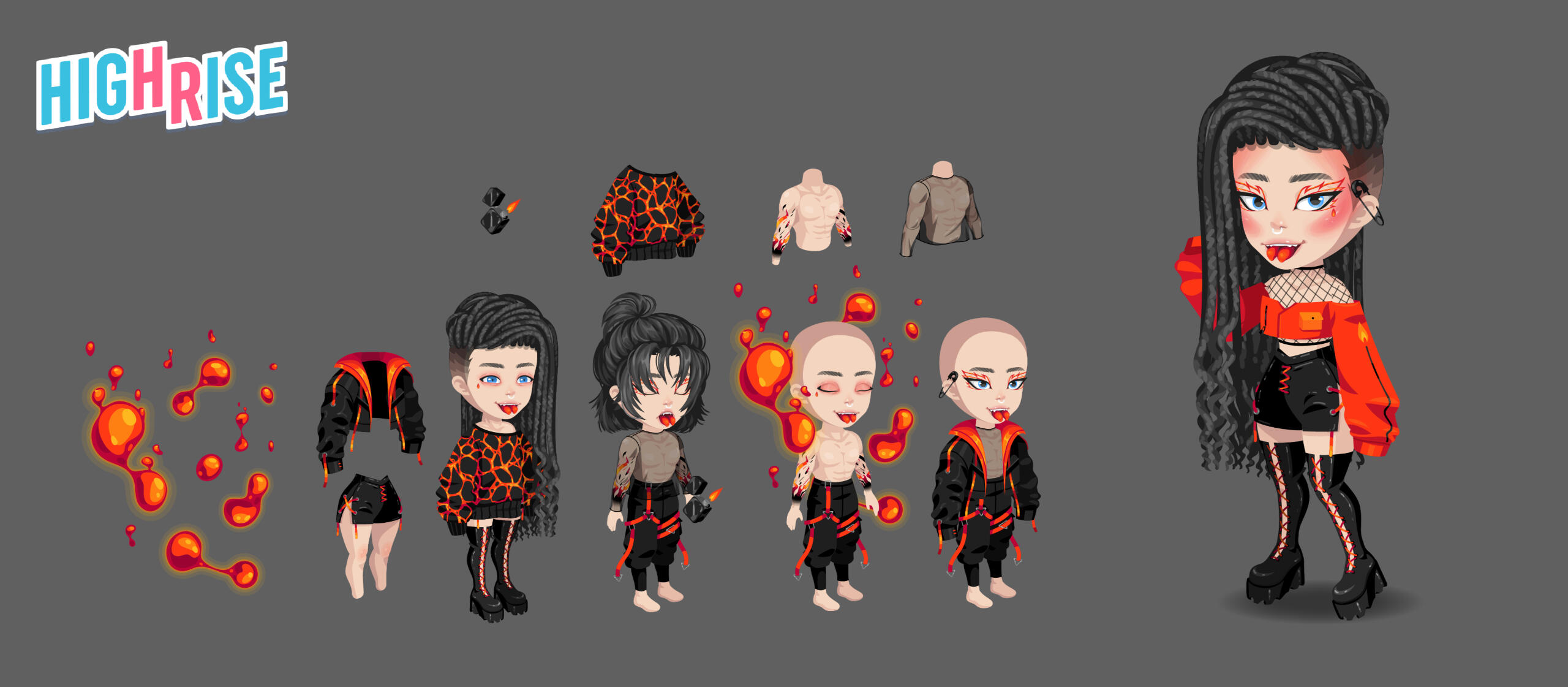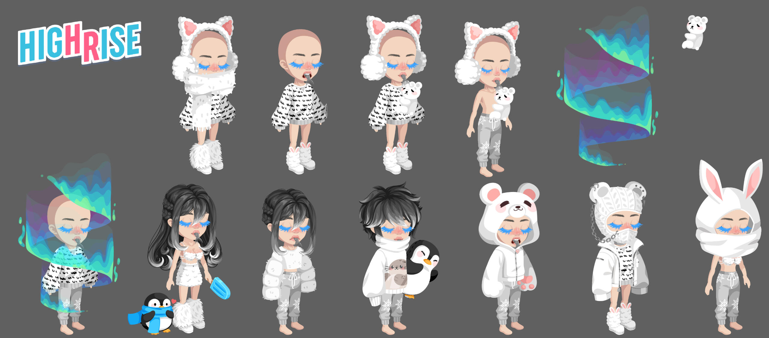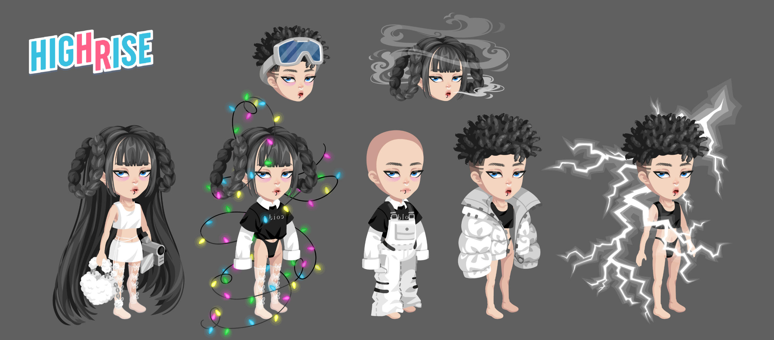 During my time at Pocket Worlds, I started as an artist for the game Highrise, producing approximately 16 to 24 items per week. The process involved brainstorming sessions, creating mood boards and concept art for in-game assets, mainly items used by avatars, which were then vectorized in Adobe Illustrator for testing and implementation in the game.In addition to avatar items, I also contributed artwork for UI elements, event promotions, and furniture design. A key part of the work involved direct collaboration with the player community, helping to bring their original creations into the game.